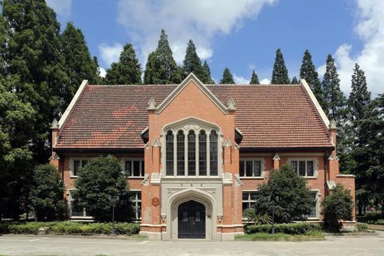 大禮堂:大禮堂整體為二層磚混結(jié)構(gòu)房屋,建筑平面呈“L”形,是滬江大學(xué)標(biāo)志性建筑之一。