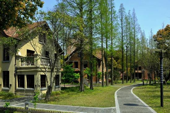滬江國際文化園:綠樹掩映中的7座形式各異但風(fēng)格統(tǒng)一的獨立小別墅構(gòu)成了國內(nèi)首創(chuàng)的“滬江國際文化園”,園內(nèi)設(shè)有7個文化交流中心,共同成為一個獨特的校園國際文化社區(qū),是大學(xué)建筑群的重要組成部分。