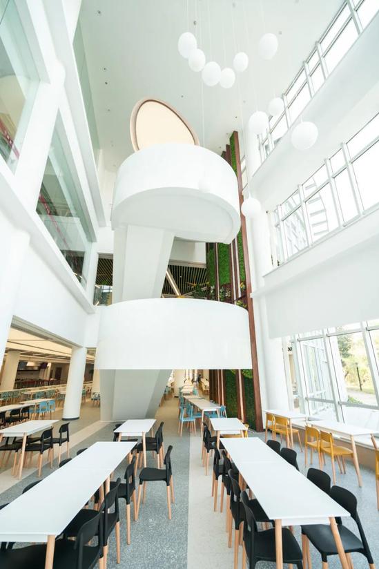 “在食堂吃出了圖書館的感覺。”華東師范大學夏雨廳食堂的改造升級,讓學生們眼前一亮,更令新生發出了“華東吃飯大學名不虛傳”的感嘆。落地窗外正對著蜿蜒穿過校園的小河,擁有獨家“湖景”的食堂,在一樓、二樓遠離售餐臺、座位使用率不高的區域設置了休閑區,在就餐時間外為師生提供交流、學習、研討的好去處。