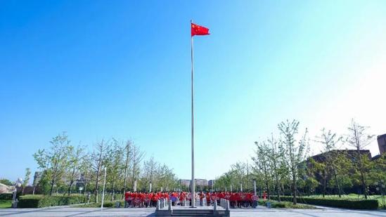 同天早上8時(shí),上海對(duì)外經(jīng)貿(mào)大學(xué)校園里響起了嘹亮的國歌聲。在松江校區(qū)信息樓南廣場上,在國旗護(hù)衛(wèi)隊(duì)的守護(hù)下,五星紅旗冉冉升起。參加升旗儀式的全體師生肅立,向祖國致敬。“我愛你,中國!”