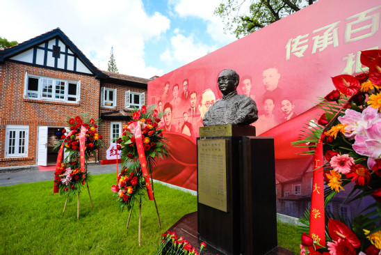 “我們不會忘記,在民族危亡之時,那些校園里的革命先行者;我們不會忘記,在崢嶸歲月里,堅守教育救亡的紅色堡壘……”在上海理工大學的劉湛恩烈士故居主題館前,師生們迎著朝陽,深情朗誦《我們不會忘記》。禮兵們穩穩抬起花籃,邁著整齊的步伐,向烈士雕像敬獻花籃。