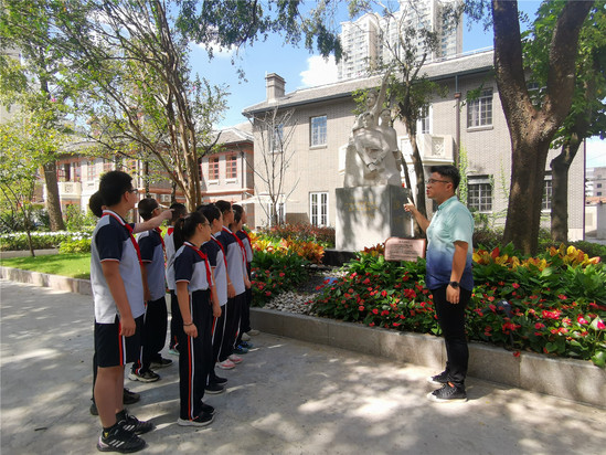 市南中學校團委聯合大隊部在高中各支部、初中各中隊開展主題為“銘記歷史,緬懷先烈”主題團日活動和十分鐘隊會。高二(2)班團支部圍繞市南中學校友“陳仲信”的故事展開學習討論,團員學生代表孫瑆偉以自己在參演話劇《陳仲信》的經歷為內容,與大家分享了他如何通過實際行動學習烈士故事弘揚烈士精神。預備年級的少先隊員們則聚集在校園內“上海中學生打響抗日救亡運動第一炮”的雕像前,聆聽校友先烈們如何在革命年代抗擊侵略者的故事。“每年烈士紀念日之際,我們都會為青年學生學習先烈故事積極搭建平臺,鼓勵他們通過說、演、參觀等多種形式激發愛國信仰,傳承紅色基因。”市南中學團委書記徐軼鋮表示。