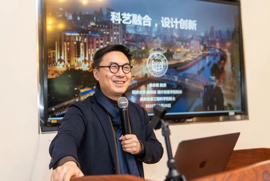 在隨后舉行的科藝融合創(chuàng)新論壇上,同濟(jì)大學(xué)副校長、設(shè)計創(chuàng)意學(xué)院院長婁永琪,知名藝術(shù)家Alexander Fabian Brandt(飛蘋果)分別作了主旨演講。