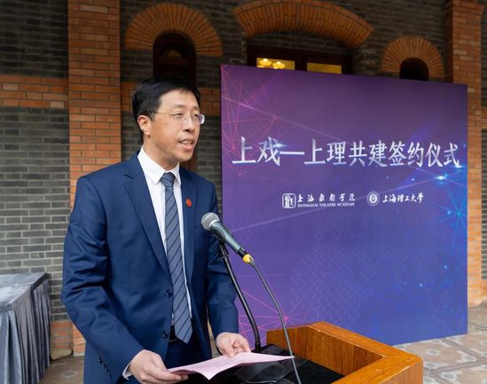 簽約儀式上,上海戲劇學(xué)院院長黃昌勇和上海理工大學(xué)校長丁曉東簽署了共建協(xié)議,并為“兩院三中心”揭牌。