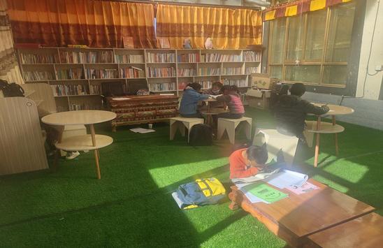 寒假如期到來,乃村駐村工作隊通過鼓勵、教育的方式引導(dǎo)孩子們養(yǎng)成閱讀的良好習(xí)慣。經(jīng)過一段時間的努力,現(xiàn)在上午不到10時,乃村學(xué)生就背著書包前往愛心書屋閱讀和學(xué)習(xí)。他們在完成自己寒假作業(yè)的同時,閱讀愛心書屋內(nèi)圖書,增加了見識,陶冶了情操。書屋同樣吸引了剛剛步入幼兒園的兒童前來學(xué)習(xí),他們從簡單的數(shù)字和藏語字母開始一筆一筆書寫,一絲不茍,全神貫注。