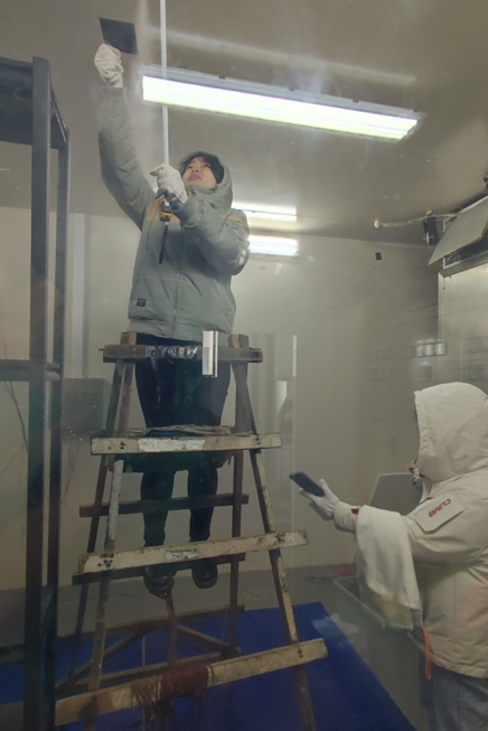 “實驗工作量大,環(huán)境惡劣,我們團隊工作很辛苦,特別是六名研究生,他們幾乎每天都會來造雪實驗室做實驗。”趙巍表示,這些學生十分刻苦認真,為了減少冷風對造雪機產(chǎn)生的影響,他們會舉著擋風板,“人肉”站在冷風機風口前,在零下十五度的冷風中,經(jīng)常會被吹得瑟瑟發(fā)抖。