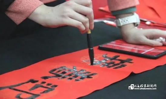 另外,還有一部分同學沒有回家過年,但在學校里也同樣感受到了春節的喜悅,今年他們與上海理工大學一起度過了一個難忘的春節。“雖然沒有回家過年,但學校的過年氣息讓我感到十分親切,在校史館與學校大門前舉著對聯與同學們合影,也是非常難忘的經歷。”
