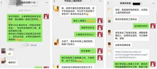 作為拋出“橄欖枝”的鄰居之一,徐白與朱旭平時(shí)只是“點(diǎn)頭之交”,看到群內(nèi)的消息后,就職于中科院上海藥物所藥物安全評(píng)價(jià)研究中心的她立即加了朱旭好友,在確認(rèn)了畢業(yè)生的教育背景等基本情況后,反饋給中心的人力資源,幾天時(shí)間就促成了后續(xù)的線上面試等招聘流程。“看到同學(xué)們拿到offer,我很開(kāi)心,也機(jī)緣巧合成為了受益人之一,有名同學(xué)剛好進(jìn)入我所在的部門,希望她能在這里成就更好的自己。”