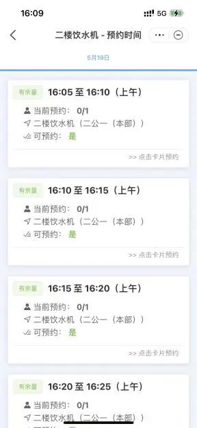 陸天成還開發出具備宿舍樓內飲水機預約功能的小程序
