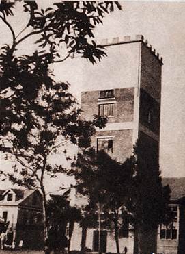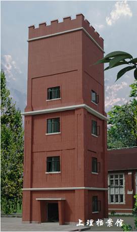水塔為磚混結構,共五層,建筑面積 298 平方米。水塔建成后,保障師生用上清凈的自來水。1937年8月遭日軍炮擊,水塔上部留下彈孔。