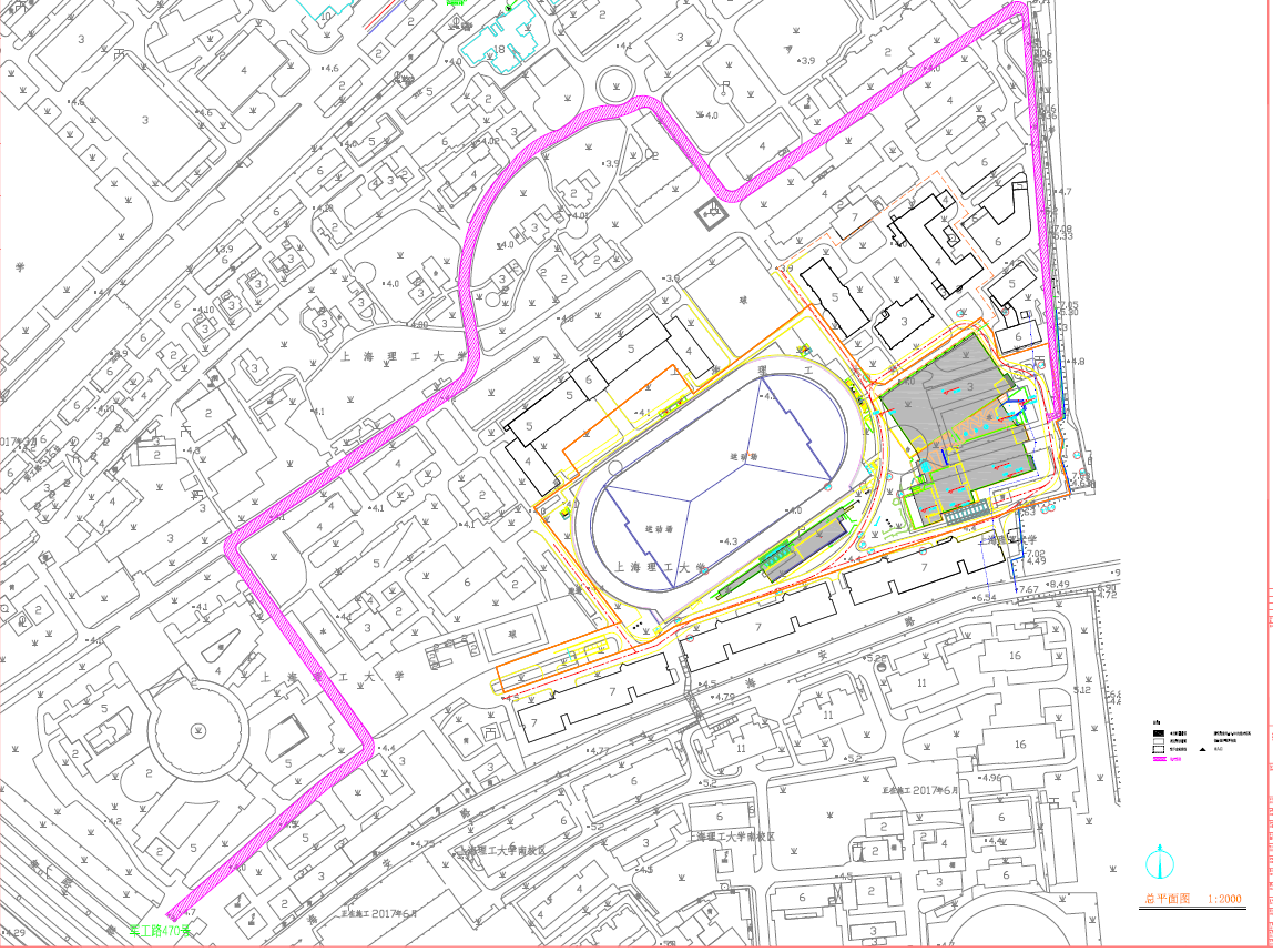我校軍工路516號校區改擴建工程體育健身中心項目進入室外總體施工階段,涉及室外地下管道、道路、綠化等工程內容。