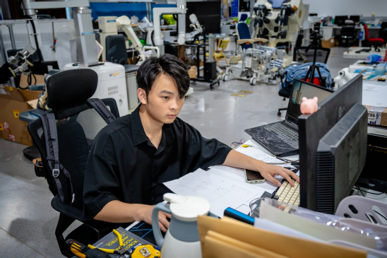 在調研中,周洲注意到很多老年人因為身體機能下降而無法自如使用餐具,只能依賴護理人員一口一口地喂,但喂食速度慢加上一名護工需要同時看護多名老人,讓老人的進餐變成了難題。為了解決這個問題,從最基礎的模型設計到復雜的安全交互控制,周洲在老師的指導下不停攻關,發明了助餐機器人原理樣機,并不斷迭代升級。他作為主要完成人申請了5項發明專利,其中4項已授權。