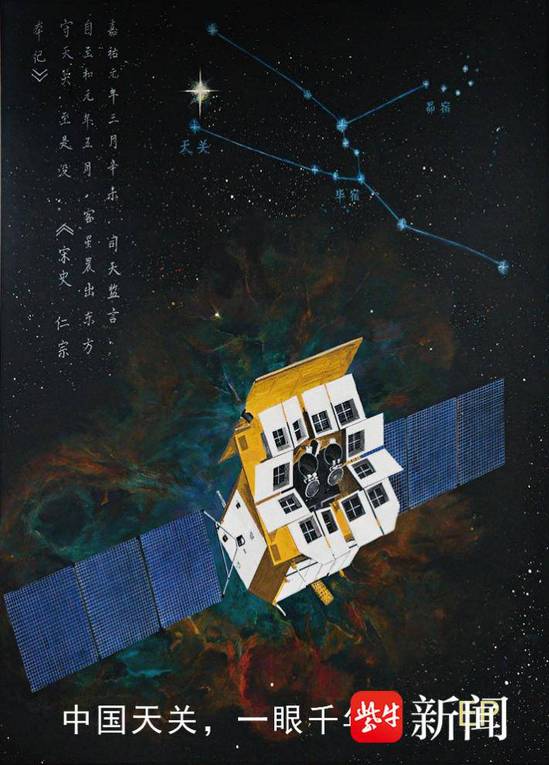 “天關(guān)”衛(wèi)星藝術(shù)圖。中國(guó)科學(xué)院國(guó)家天文臺(tái)供圖