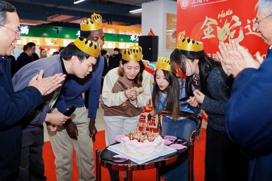 上海理工大學校長朱新遠在年夜飯伊始致新春祝福。全體校領導與留校期間過生日的同學們共慶生日,全場齊唱生日歌。當天生日的出版學院董心怡同學說:“因為實習的原因留校過年,沒想到生日當天得到了學校的驚喜,有這么多人跟我一起慶祝生日,我感受到了學校對學生的關心和關愛,非常非常感動。”