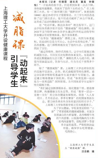 “一開始真的很辛苦,但是看到體重一點點下降,身體越來越健康,我就有了堅持下去的動力。”在上海理工大學,有一門體育課只招“微胖同學”,體重指數(BMI)超過25的學生才需要報名。大三學生劉昌浩選修了這門課后表示,他不僅成功減掉了35公斤體重,還養成了運動和健康飲食的習慣。