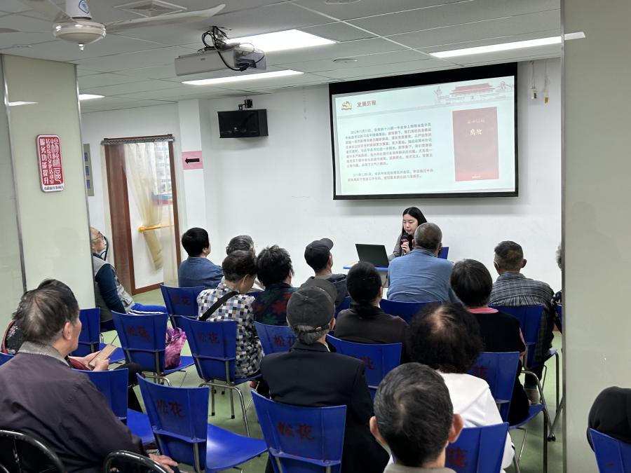 活動伊始,王平向各位退休黨員介紹了未來社區的發展規劃,講述了中央八項規定精神的內容與重要意義。接著,顧鑫怡作“學習中央八項規定精神,做好黨群服務基層工作”理論宣講。她從發展歷程、主要內容、內在要求與重要意義展開闡釋中央八項規定精神,詳細介紹了黨在自我革命進程中的光輝歷程,并以社區身邊的真人真事舉例,倡導退休老黨員做好榜樣,深入群眾做實事。