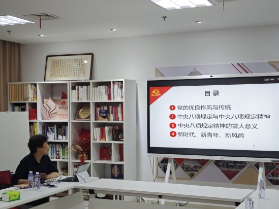 活動伊始,汪維以“傳承黨的優良作風,貫徹落實中央八項規定精神”為主題,開展專題授課。她從制度溯源、內容解讀、校園實踐、行為指引多個維度切入,系統解讀中央八項規定出臺的歷史邏輯與時代內涵。她結合實際案例闡述了中央八項規定精神實質在于倡導厲行勤儉節約、反對奢侈浪費和奢靡之風、提倡廉潔從政以及堅持務實的工作作風等。作為新時代的青年黨員,應將中央八項規定精神融入日常行為規范,應從自身做起,將紀律意識內化于心、外化于行,杜絕形式主義和官僚主義,真正做到以實際行動服務師生、貢獻社會。