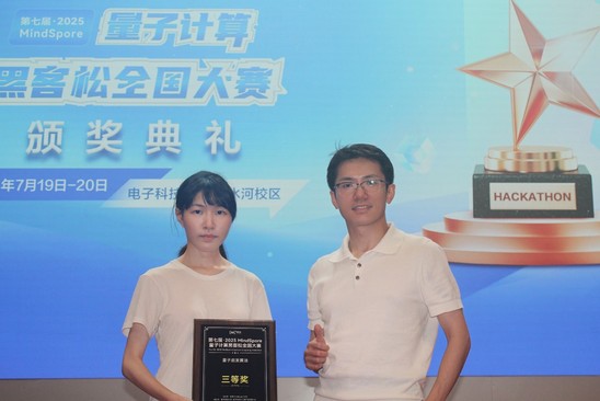 近日,華為MindSpore第七屆量子計算黑客松全國總決賽在電子科技大學清水河校區舉辦,來自全國各地的高校團隊和科研機構齊聚一堂,共同參與本次賽事。經過為期4個多月的激烈比拼,智能科技學院格致創新班本科生朱珈儀、陳述季、萬廣組成的團隊在量子啟發算法賽道中斬獲三等獎。團隊的指導老師是學院李蔚特聘研究員。