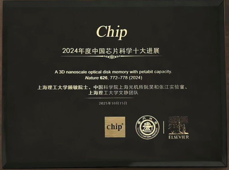 近日,第三屆芯片大會暨Chip 2024中國芯片科學十大進展頒獎典禮于深圳舉行。上海理工大學顧敏院士在會上做了題為”片上光學人工智能:計算和存儲”(On-chip optical artificial intelligence: computation and memory)的大會報告。會議期間,Chip期刊正式發(fā)布了“Chip 2024中國芯片科學十大進展”及“提名獎”名單。由顧敏院士團隊牽頭研發(fā)的“Pb級超分辨三維納米光子存儲器技術(shù)”成功入選“Chip 2024中國芯片科學十大進展”。