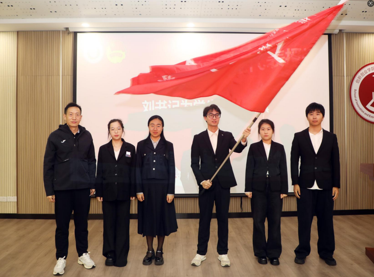 劉德強(qiáng)為出征代表授旗,勉勵(lì)各團(tuán)隊(duì)在國(guó)賽舞臺(tái)上充分展現(xiàn)上理學(xué)子勇于創(chuàng)新、追求卓越的精神風(fēng)貌,力爭(zhēng)取得優(yōu)異成績(jī)。
