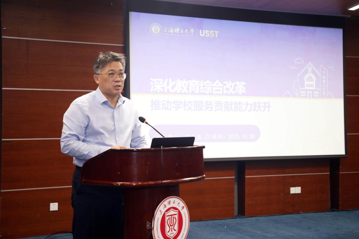 王凌宇主持并講話。他首先從國家、上海市、學(xué)校三個層面分析了教育綜合改革的背景。他指出,青年教師是學(xué)校事業(yè)發(fā)展的生力軍,要緊緊圍繞學(xué)校新的辦學(xué)定位,切實真正理解領(lǐng)會教育綜合改革的目標(biāo)和重點任務(wù)。要牢牢把握“重服務(wù)、強貢獻”價值導(dǎo)向,積極應(yīng)對新的辦學(xué)評價方式對學(xué)校和教師個人發(fā)展帶來的機遇和挑戰(zhàn)。學(xué)校將著力營造良好的制度文化,增強各類工作機制的協(xié)同協(xié)調(diào),努力營造促進教師分類發(fā)展、人盡其才的良好環(huán)境。他希望全體青年教師成為學(xué)校教育綜合改革的先鋒力量,始終以改革創(chuàng)新的心態(tài),不斷深化產(chǎn)教融合,加強交叉融合;始終以開放合作的心態(tài)參與開放辦學(xué),爭取更多辦學(xué)資源和支持;始終以共生共榮的心態(tài),努力與改革同向同行、同頻共振,確保改革蹄疾步穩(wěn)、行穩(wěn)致遠(yuǎn)。希望全體教師深入推進綜合改革落地見效,不斷提升人才培養(yǎng)質(zhì)效和科技創(chuàng)新供給水平,全面提升學(xué)校的社會服務(wù)貢獻力,為加快高水平科技自立自強,推動新質(zhì)生產(chǎn)力發(fā)展做出更大貢獻。