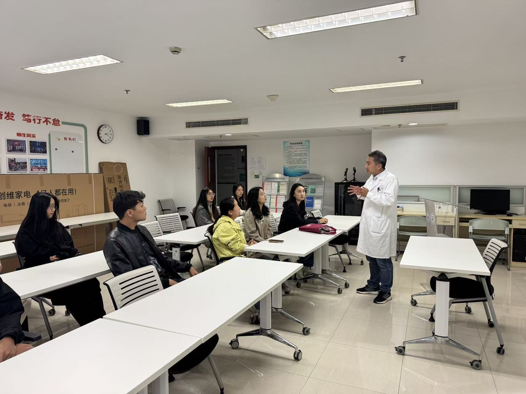 隨后,李斌圍繞常見的心理困擾、睡眠健康與科學治療等為師生們帶來了一場科普講座。首先醫生根據臨床經驗為大家介紹了常見的精神障礙如抑郁癥、焦慮癥等疾病的預防和治療方法。在談及睡眠與心理健康時,醫生指出,構成健康的三大支柱——飲食、運動與睡眠中,優質睡眠對心理狀態的維護尤為關鍵,而當下使用智能手機等電子設備不斷減少了人們的睡眠時間。針對學生群體中常見的使用“褪黑素”問題,醫生也給出了專業提醒,必須在經過專業檢測、確認體內缺乏的前提下,遵醫囑適量補充,擅自服用可能對身體機能造成不良影響。在介紹相關疾病治療策略時,醫生重點闡釋了“雙管齊下”的干預理念,即一方面要準確識別并有效規避應激源,另一方面需科學用藥,方能達到理想療效,同時也介紹了CBT(認知行為療法)的重要性。這些深入淺出的講解,讓在場的師生們對心理健康有了全新的認識。