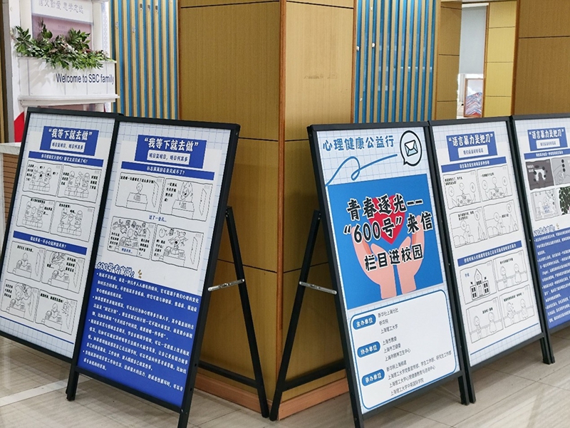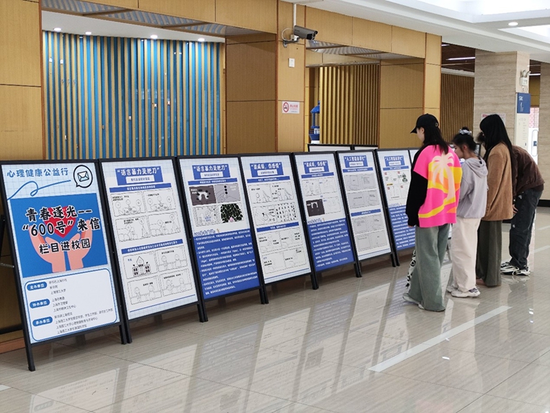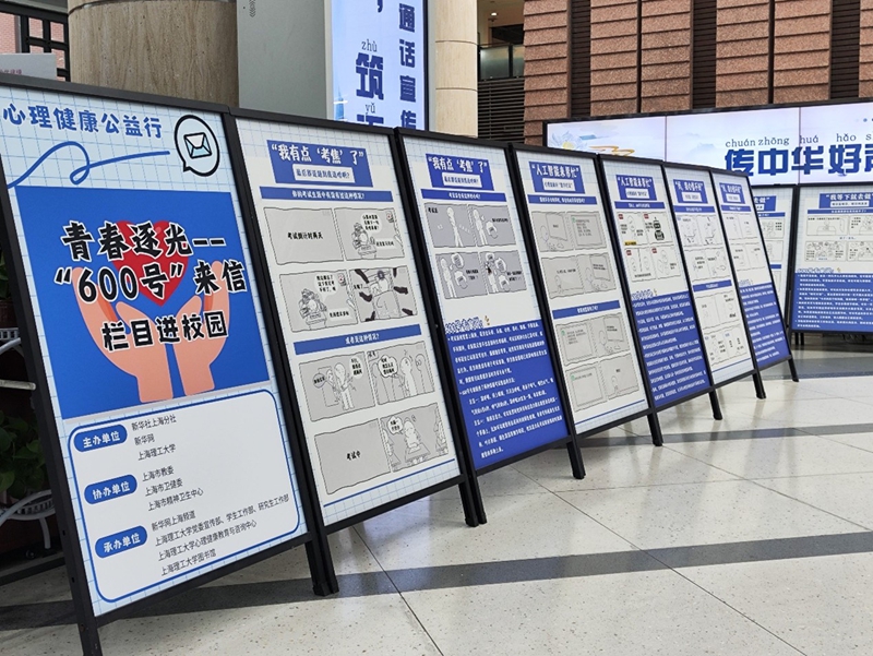 11月7日,“青春逐光——《‘600號’來信》欄目進校園”圖片展走進上海理工大學,在復興路校區(qū)教學樓與軍工路校區(qū)湛恩紀念圖書館同步展出。活動通過漫畫、文字與心理學知識相結合的形式,引導大學生以輕松、生動的方式關注心理健康,呵護心靈成長。