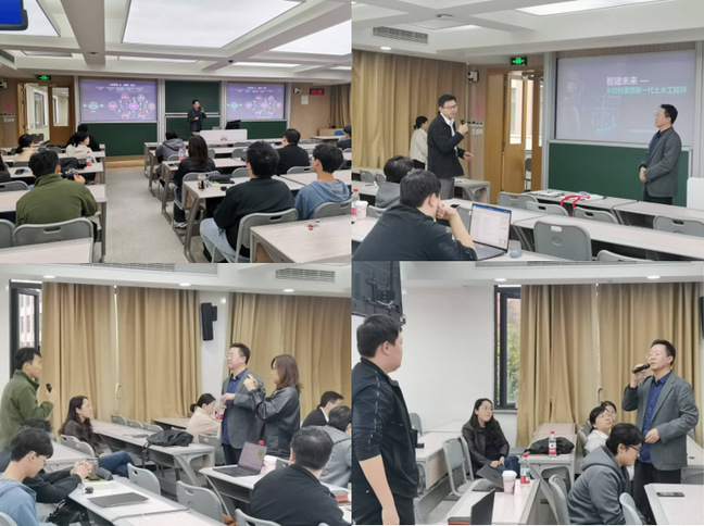下午,王偉東為環(huán)建學院師生作“智建未來——AI如何重塑新一代土木工程師”專題報告。他從親身設計的陸家嘴“藍寶石”建筑項目設計切入,生動展示了AI技術在建筑設計與施工管理中的強大應用潛力。他重點分享了AI輔助審圖技術的實踐案例,令在場師生直觀感受到技術革新為行業(yè)帶來的巨大效能提升。同學們就AI在結構優(yōu)化、智能建造等多個具體領域的應用前景與發(fā)展挑戰(zhàn)提出問題,王偉東與師生們進行了深入的互動交流。副院長饒平平和師生們交流了AI輔助審圖軟件開發(fā)成本和未來產(chǎn)品規(guī)劃。