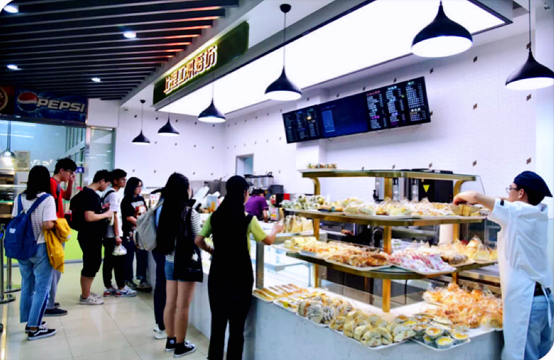 主要檔口:巨星潮漢堡 ,牛百碗成都小吃,香鍋麻辣燙 VS美潤水餃 ,鐘氏蒸菜VS老表瓦罐湯,咖喱飯VS牛丼飯;學府星空面包房